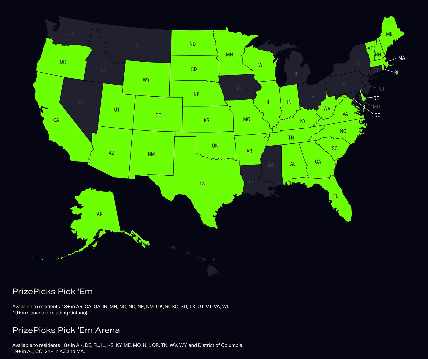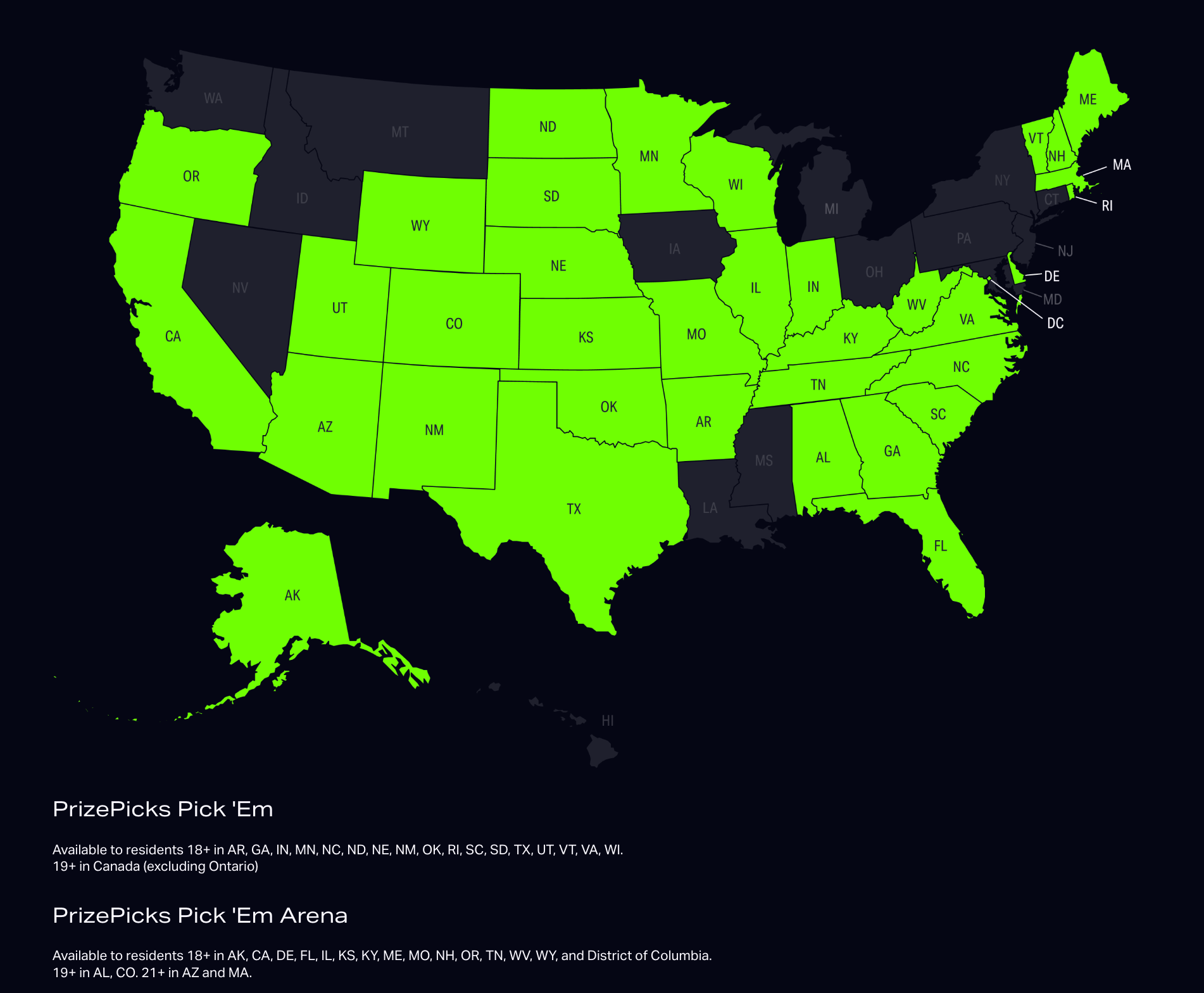 PrizePicks is now offering its Arena product in California, not its pick’em game, according to a page detailing which games it offers in each state. Its original pick’em game is one player playing against the house; Arena is a peer-to-peer format. In both formats, users try to predict the performances of more than one player.